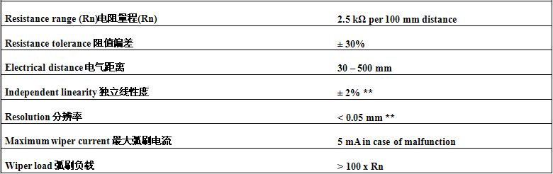 -electrical measuring range of 30-500mm 电气测量范围可达30-500mm