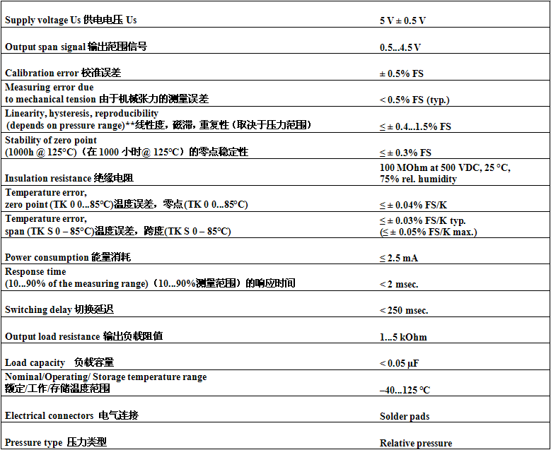 -ratiometric output signal(5 … 4,5V) 电压输出百分率