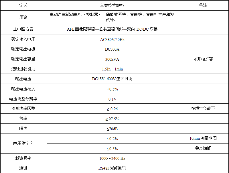 电动汽车蓄电池模拟器是我公司研发生产的,专门面向电动汽车相关生产厂家的试验设备,其直流输出特性具有高精度及高动态响应特性,并具有向电网回馈能量的功能。采用全数字控制,控制精度高、响应速度快、输出调节范围广。电池模拟功能能够模拟各种规格电池的充、放电特性,进而为电机、储能逆变器、充电桩等设备提供具有电池特性的电能。输出具有可编程功能,通过软件设置可用于多种场合。可模拟电池“恒压”、“恒流”或“恒内阻”输出特性及电池充放电等。同时该模拟器对所连接的试验设备具有限流保护功能。该设备可用于电动汽车驱动电机(控制器)、储能式逆变器、电动汽车双向充电机的测试、大容量电池组充放电等试验场合。