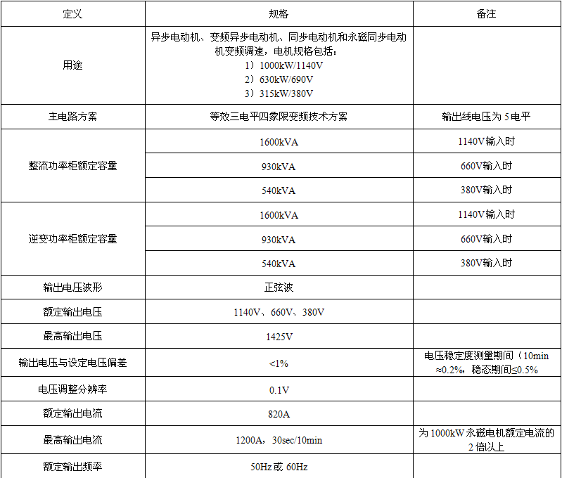 ●变频设备的额定容量在1140V输出条件下高达1600kVA。
